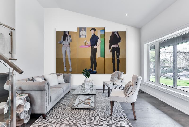 Celok pozostáva z troch samostatných obrazov. Dva krajné obrazy majú rozmery 70x140 cm a stredný obraz má rozmery 90x150 cm.