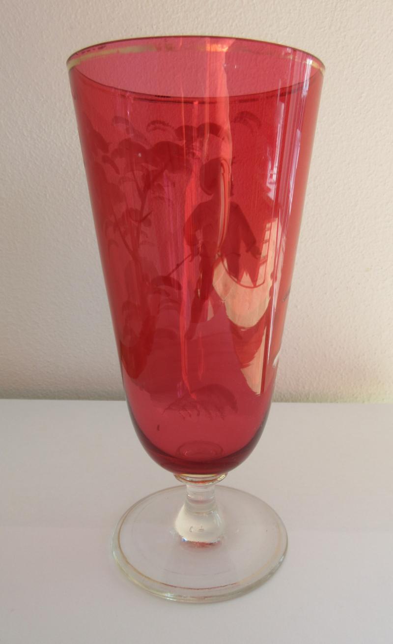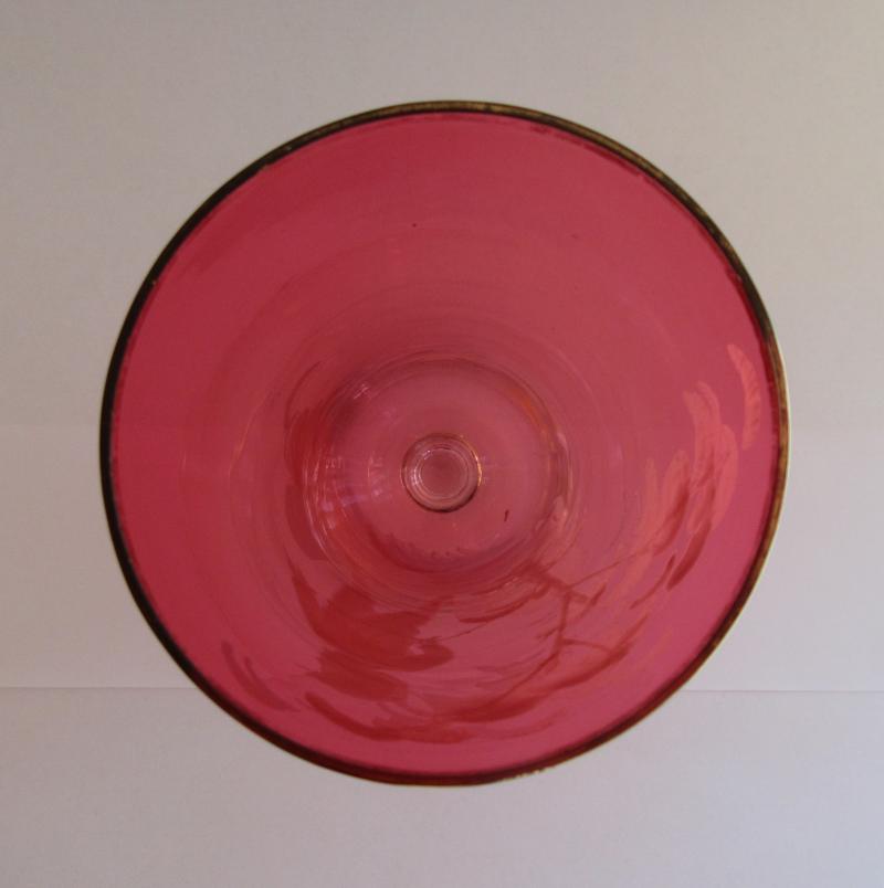Starý pohár z fúkaného skla s ručnou maľbou.Sklo je zaujímavej ružovej farby.Pohár je ručne maľovaný s figurálnou maľbou.Excelentná umelecká práca.Krásne drobné bublinky v skle.Veľmi dobre zachovalý vitrínový stav bez poškodenia.Vyrobené v strednej Európe na konci 19. storočia