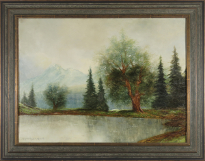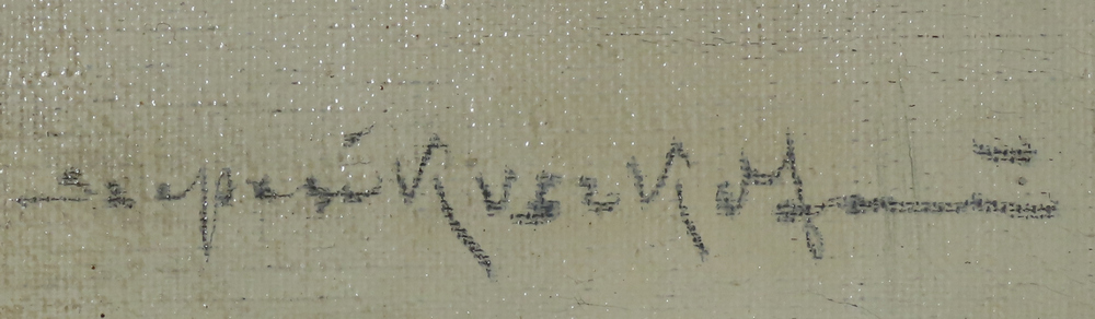2 058,02 € - Pri rieke Poprad. Okolo 1910. Olej na plátne. 69 x 75 cm.