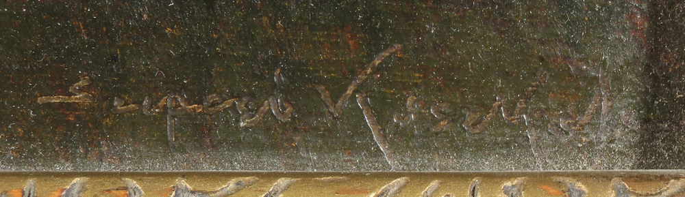 2 058,02 € - Pri rieke Poprad. Okolo 1910. Olej na plátne. 69 x 75 cm.