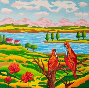 Pozeráte sa na bájnu krajinku, v ktorej sa zastavil čas, kde je všetko krásne, kde lúky, kopce, hory, rieka, obloha, kvety a vtáky sú v dokonalej symbióze a harmónii.Vaše vnútro upokojí a vaša fantázia vás prenesie do tejto romantickej pokojnej krajiny.