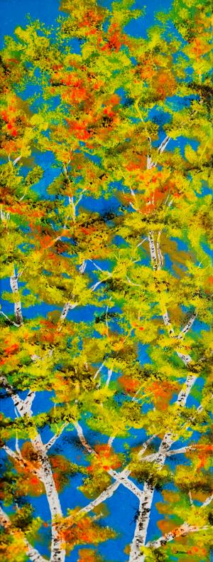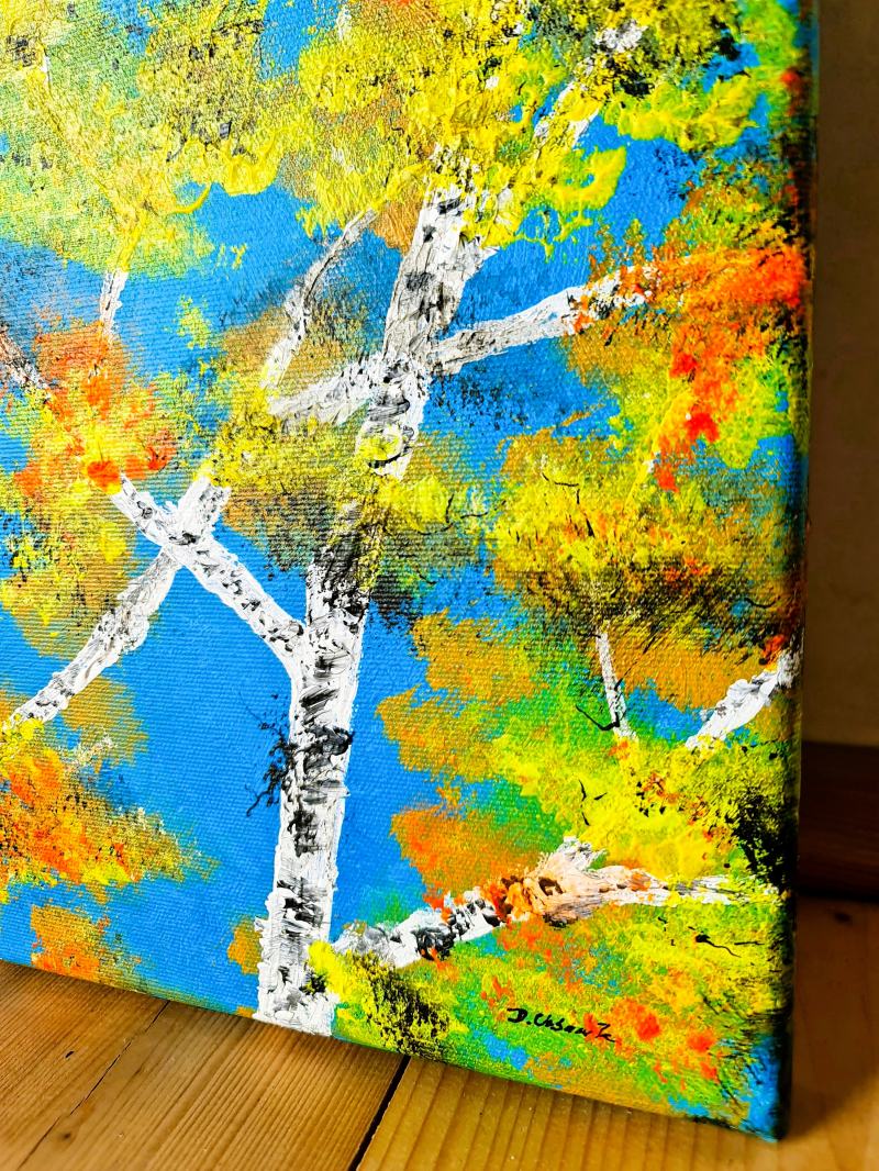 V tomto diele som vylial svoje emócie do žiarivých žltých brez, ktoré sa týčia vysoko na pozadí búrlivej, textúrovanej oblohy. Použitie akrylových farieb v impresionistickom štýle mi umožnilo zachytiť prchavú energiu a odolnosť prírody. Tento obraz prináša osviežujúci záblesk života a nádeje, pripravený naplniť akýkoľvek priestor silným pocitom obnovy a tichej sily nachádzajúcej sa v kontrastoch prírody.