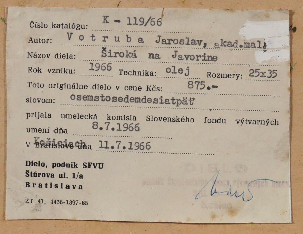 | Značenie: | vpravo dole, vzadu štítok z Diela |