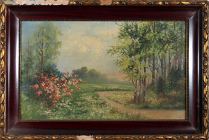 Technika: olej na lepenke poškodený rám