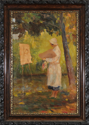 12 000 € - Grófka Sztáray na prechádzke. Olej na plátne, 58x73 cm. (DARTE - 29.11.2009)