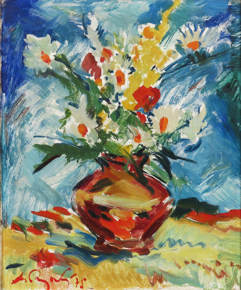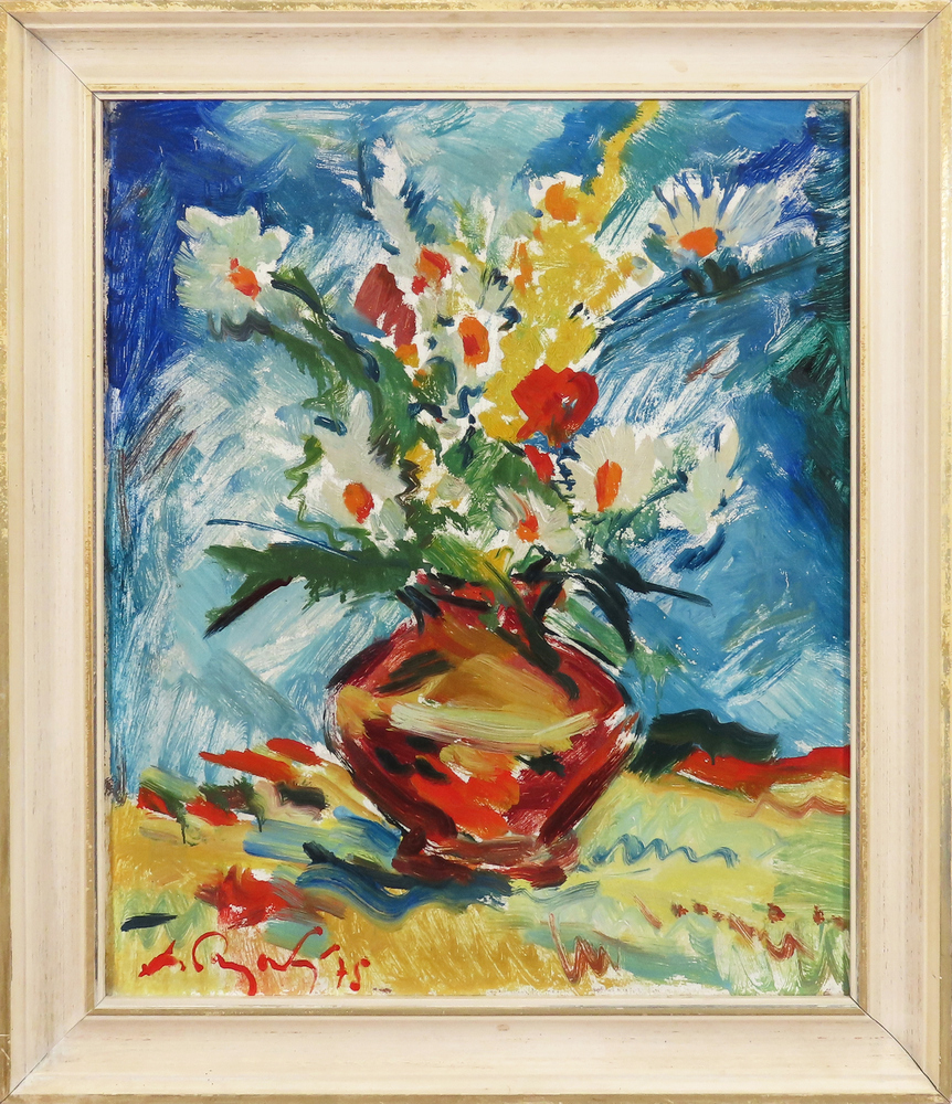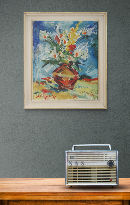Kvetinové zátišie patrí medzi tradičné námety maliarskej tvorby Mikuláša Rogovského. Autor v kompozícii zachytáva kyticu vo váze prostredníctvom uvoľneného maliarskeho rukopisu a bohatej farebnosti, ktorá dodáva obrazu živý a dekoratívny charakter. Rogovského zátišia sú typické citlivou prácou s farbou a atmosférou, pričom motív kvetov mu umožňuje naplno rozvinúť maliarsku expresivitu.