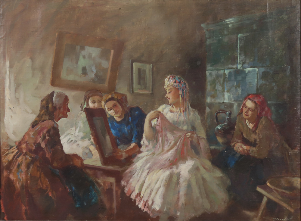 1 050 € - Opantaní krásou. Okolo 1920. Olej na plátne. 60 x 80 cm.