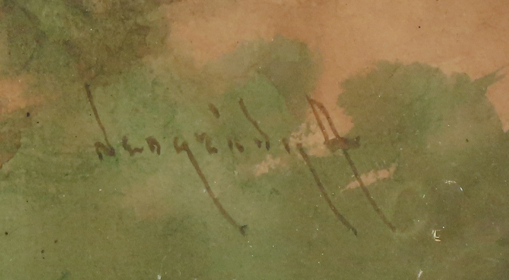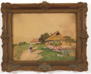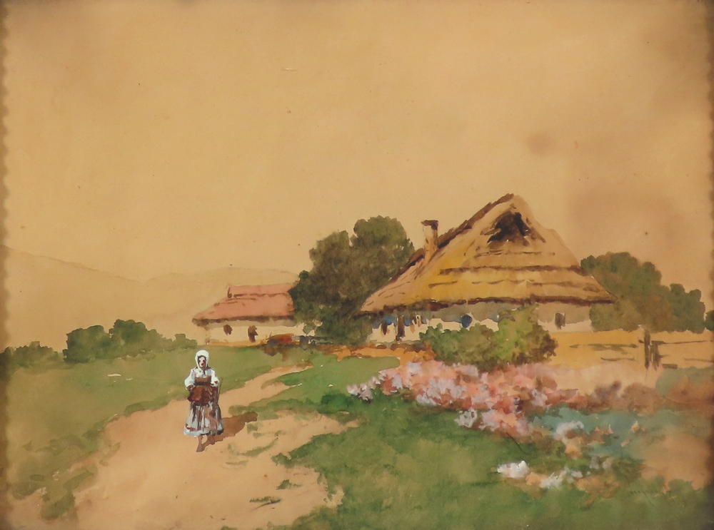 95 000 Sk - Zimná krajina (Poľovačka). Okolo 1905. Olejová tempera na papieri, 47x68 cm.