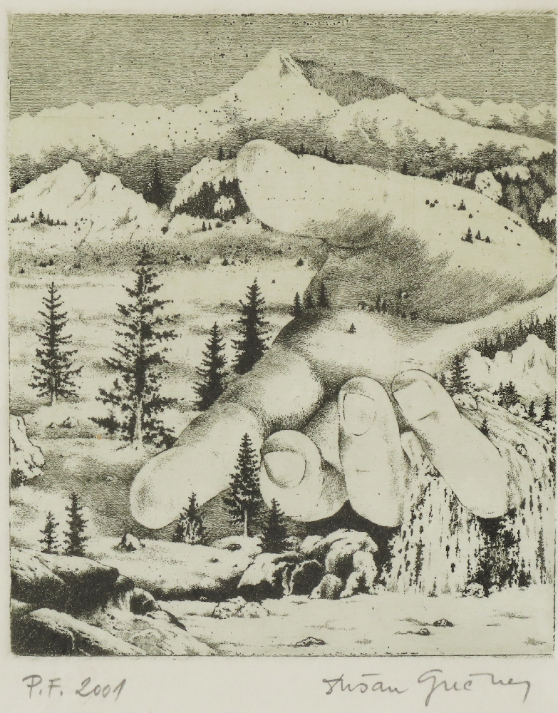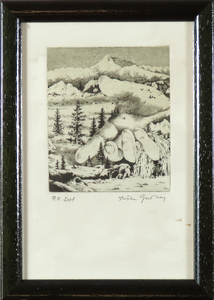 Hĺbavé, podnetné, spájajúce paradoxy iracionálnej krásy, to sú grafiky Dušana Grečnera. Mnoho jeho grafických listov osciluje medzi dvoma pólmi. 1. logickým – prísne racionálnym svetom. Reprezentujú ho výpočty, schémy, systémy. Postupuje krok za krokom ako renesanční maliari pri pitve, odhaľuje kožu, svaly, kostru. 2. svetom fantázie , krásy, imaginácie, snov a vízií.