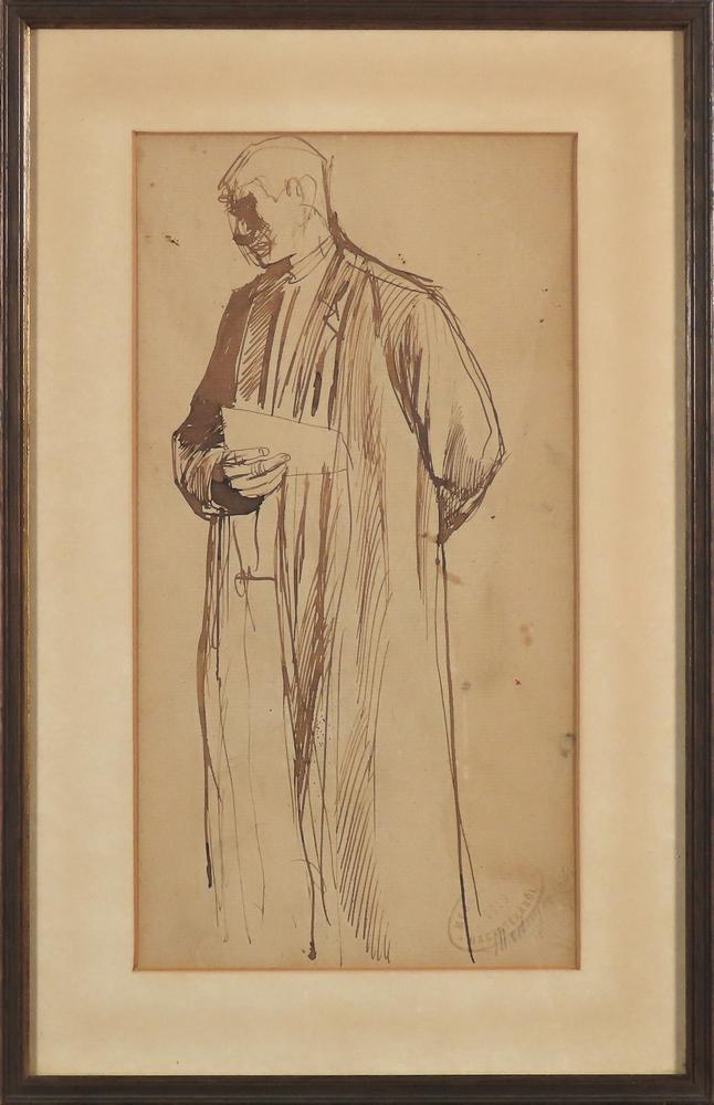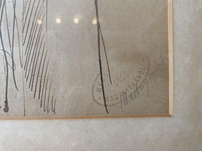Hnedy atrament. Rozmery s rámom:29x45 cm Podpis a pozostalostná peciatka v pravo dole. V zadu, etiketa galérie a popis v nemeckom jazyku.