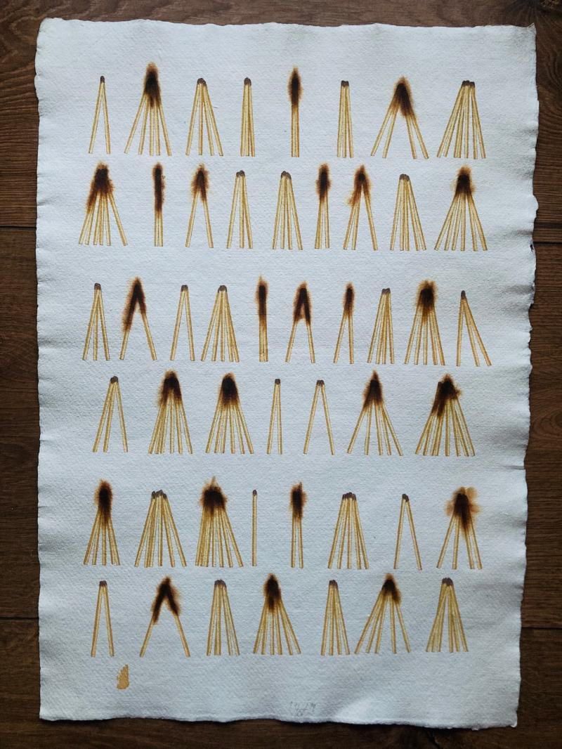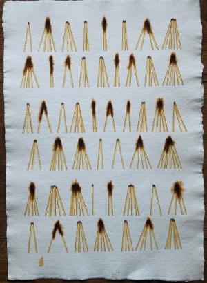 Dezider Toth - Vyhasínanie do svetla, 1990, kombinovaná technika na ručnom papieri, vypaľovanie, rozmer 58 x 40 cm, signované, nerámované.