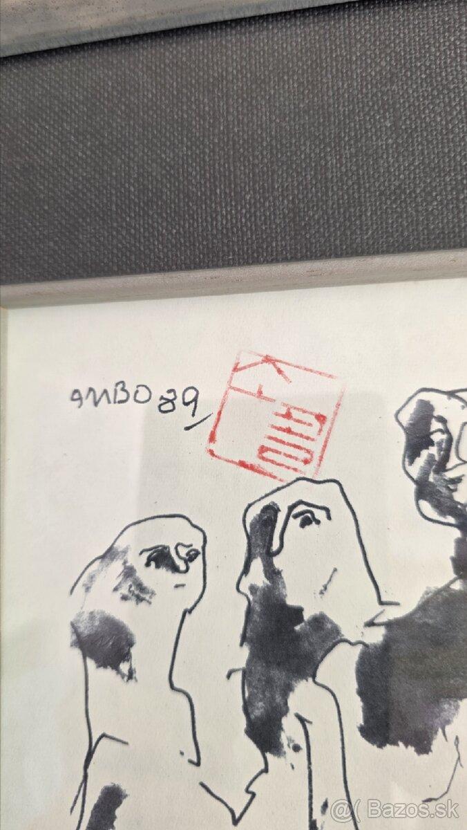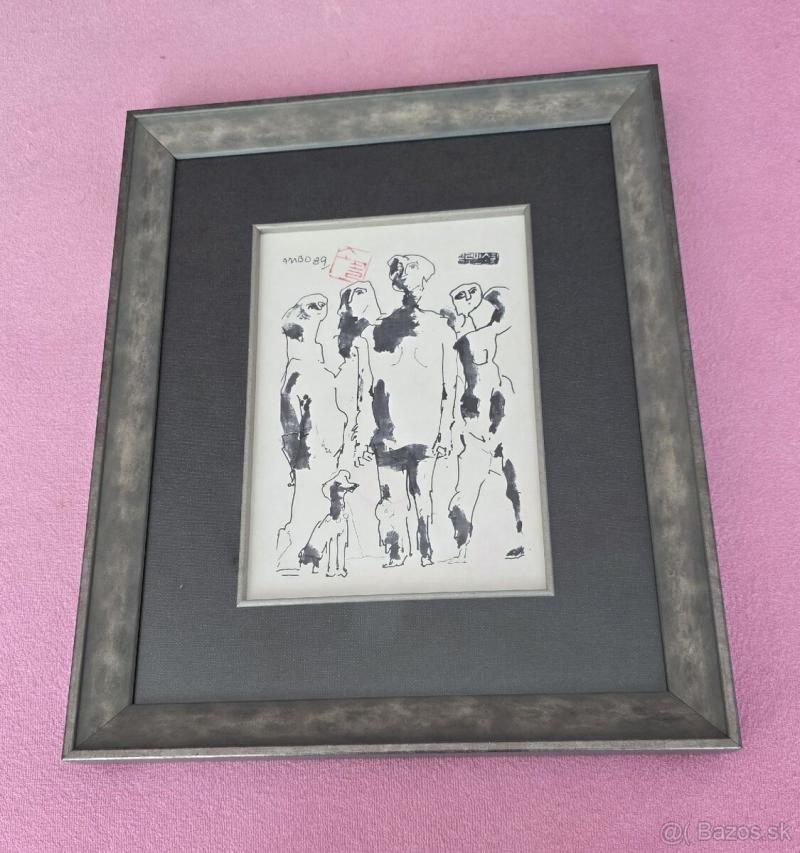 Zarámovaná autorova reprodukčná grafika na papieri s autorovou pečiatkou. Dielo 17 x 25 cm Rám 35 x 43 cm