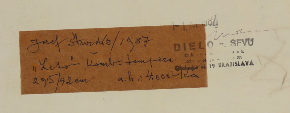Jozef Šturdík sa narodil 13. marca 1920 v Križovanoch pri Trnave, zomrel 14. novembra 1992 v Bratislave. Maliar, kresliar, ilustrátor, národný umelec. V rokoch 1939-1942 študoval na oddelení kreslenia a maľovania SVŠT v Bratislave (u J. Mudrocha), roku 1944 na viedenskej Akadémii výtvarných umení. V roku 1946 bol na štipendijnom študijnom pobyte v École des Beaux arts (u Nabonna) v Paríži. V rokoch 1945-1948 pracoval ako pedagóg na oddelení kreslenia a maľovania SVŠT v Bratislave, potom slobodný umelec. Spočiatku sa venoval tvorbe figurálnych štúdií a zátiší. Od konca 40. rokov dominoval u neho impresívny, poetizujúci prejav v krajinomaľbách, kresbách a ilustráciách. Čoskoro sa prepracoval k vlastnému štýlu, v ktorom inklinoval k osobitému lyrizmu. Pehĺbil ho v krajinárskych a figurálnych kompozíciách a zátišiach. Rozvíjal kresbu uhľom, pastelom a v kombinovaných technikách. Hudobné, literárne a teoretické záujmy ho priviedli najprv k spolupráci na viacerých literárno-umeleckých zborníkoch, potom k spolupráci so slovenskými spisovateľmi ako ich ilustrátor. Ilustroval diela P. O. Hviezdoslava, I. Krasku, P. Horova, V. Reisela, J. Kráľa, A. Plávku, V. Mihálika, ako aj diela českých a svetových básnikov (K. H. Mácha, S. Ščipačov a i.). V týchto ilustráciách prejavil mimoriadny cit pre symbiózu ilustrácie s literárnym dielom. Svoju ilustračnú invenciu potvrdil súborom 18 listov uhľokresieb k Máchovmu Máju z roku 1962. K osobitému impresívnemu realizmu sa dopracoval v 70.-tych rokoch v cykle obrazov Verše na palete. Jozef Šturdík je autorom básnickej zbierky Polokružie (1971). Od roku 1972 člen predsedníctva, od roku 1977 podpredseda Zväzu slovenských výtvarných umelcov. Zúčastnil sa na kolektívnych zväzových výstavách v Maďarsku, Poľsku, Juhoslávii, Rakúsku, ZSSR, Bulharsku a Mongolsku. V roku 1973 bol menovaný zaslúžilým a roku 1980 národným umelcom