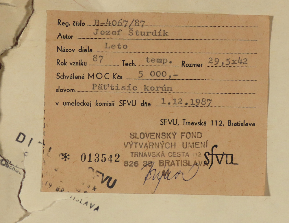 Literatúra: Matuštík, R.: Moderné slovenské maliarstvo 1945--1963. Bratislava 1965; Mojžiš, J.: Sú na svete... O raných kresbách Jozefa Šturdíka. Výtvarný život, 17, 1972, č. 1; Rusinová, Z.: Dvanásť obrazov Jozefa Šturdíka. Bratislava 1981; Mikloš, P.: Jozef Šturdík. Súborné dielo. Kat. výst. Bratislava, Slovenská národná galéria 1985. Zdroj foto.: TASR
