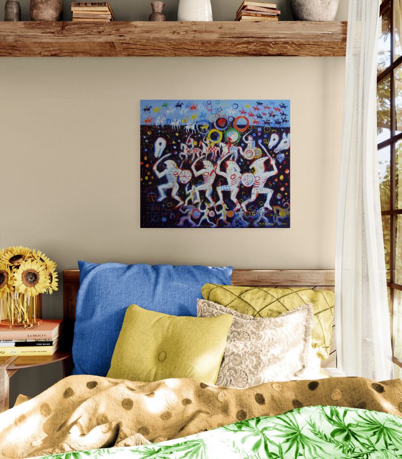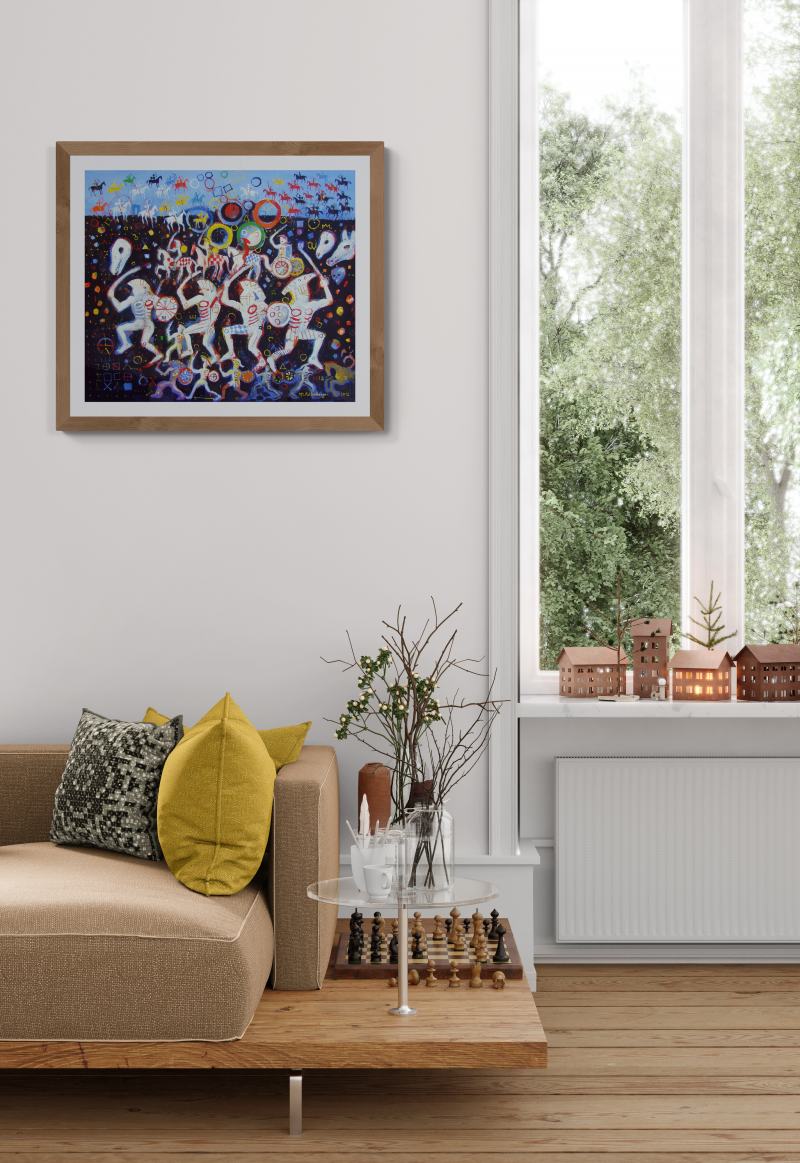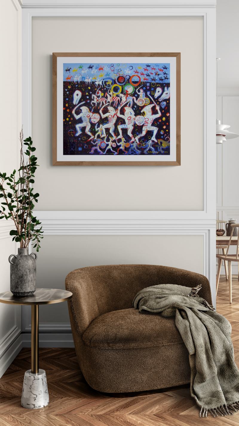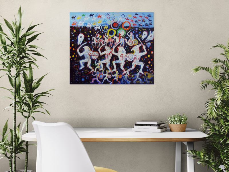 Vidíte, že hoci sú na maľbe ozbrojení vojaci, namiesto boja tancujú, radujú sa a oslavujú.
