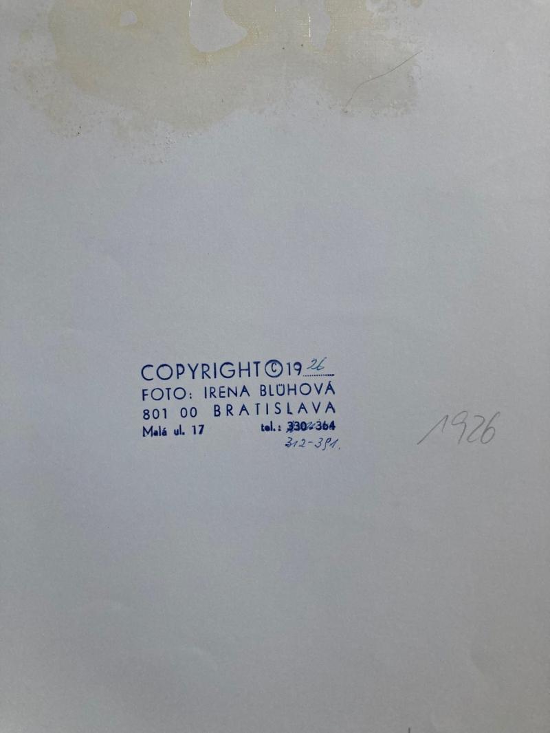 autorská čb fotografia, neskoršia edícia cca 1970 z pôvodného negatívu 1926, rozmer fotografie 39,5 x 29,5
