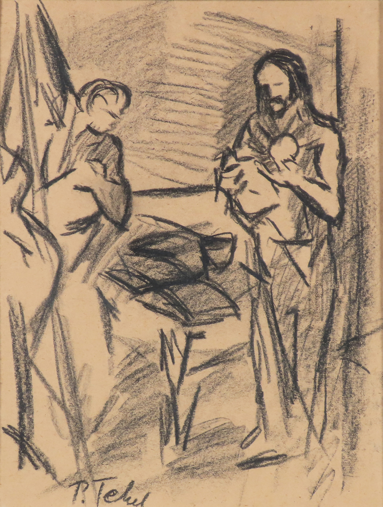 Jozef Teodor Tekel sa narodil 26. januára 1902 v Prešove – Ľuboticiach, zomrel 14. júla 1975 v Trnave. Študoval na gymnáziu cistercitov v Baji v Maďarsku, filozofiu a teológiu v Gyöngyösi. V roku 1924 bol vysvätený za kňaza, od roku 1930 študoval maliarstvo na AVU v Prahe (prof. M. Švabinský). Od roku 1924 pôsobil ako kazateľ a katechéta v kláštoroch v Bardejove, Hlohovci, Nových Zámkoch, Nitre, Fiľakove, Podhradíku. V období 1939–43 pôsobil ako profesor kreslenia na františkánskom gymnáziu v Malackách. V rokoch 1943–50 bol v pastorácii v Malackách, Bratislave a Hlohovci. Dňa 13.4.1950 bol násilne odvlečený s inými reholníkmi do Hronského Beňadika a Belušských Slatín. V rokoch 1950–1975 žil a tvoril v Trnave. Pred štúdiami sa venoval rovnako kresbe i sochárstvu. V čase svojho pôsobenia v Malackách sa stýkal s J. Alexym, M. A. Bazovským, M. Benkom, L. Fullom, J. Mudrochom; počas pôsobenia v Trnave navštevoval J. Koniarka. Spracovával najmä náboženskú a protivojnovú tématiku. Vystavoval v Trnave (1968, 1990). Literatúra: Slovenský biografický slovník, VI. Zväzok, T – Ž, Martin 1994, str. 37. Zdroj foto.: frantiskani.sk