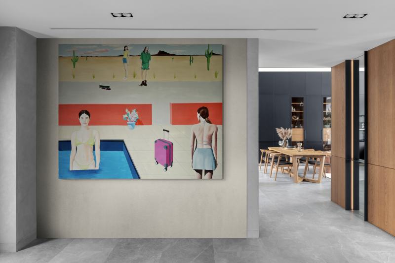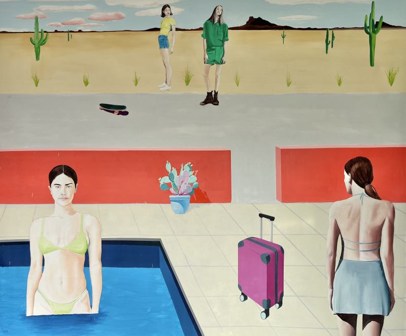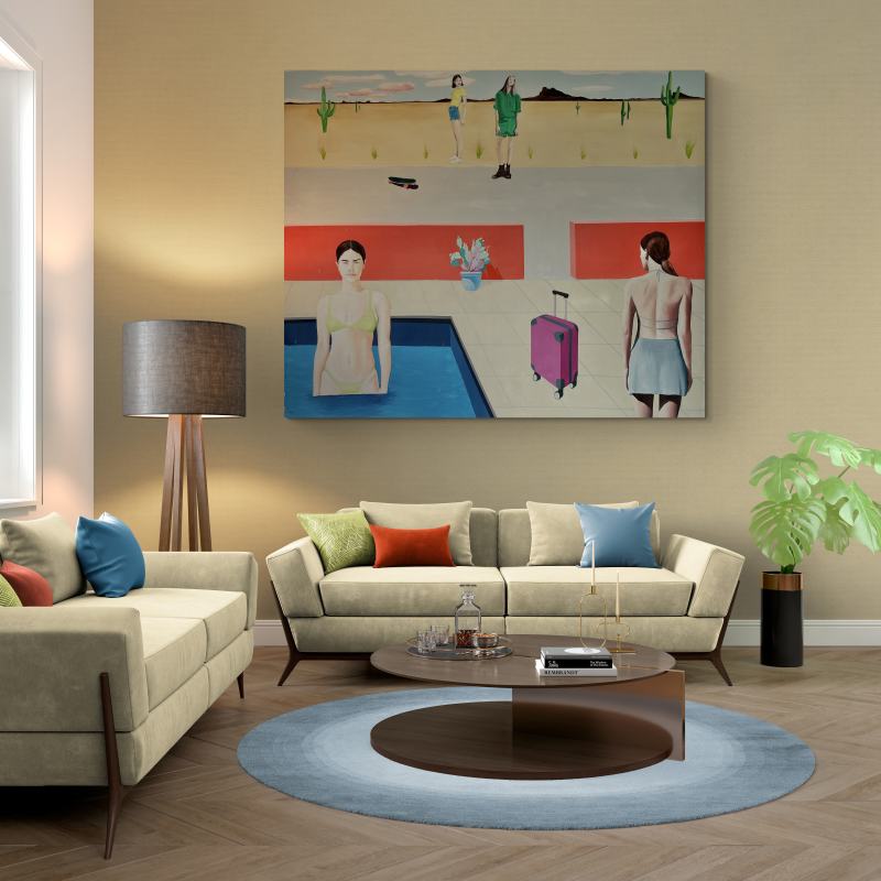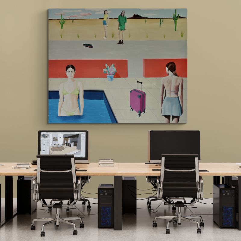 Tento obraz patrí do voľného cyklu venovaného cestovaniu. Napriek tomu, že cestovanie je dynamická činnosť, je to aj príležitosť zastaviť sa, vypnúť, oddýchnuť si od rutinného kolobehu každodenného života a užiť si nerušené chvíle relaxu....