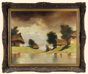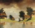 2 058,02 € - Pri rieke Poprad. Okolo 1910. Olej na plátne. 69 x 75 cm.