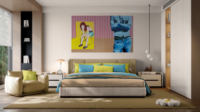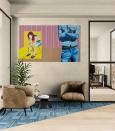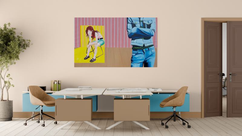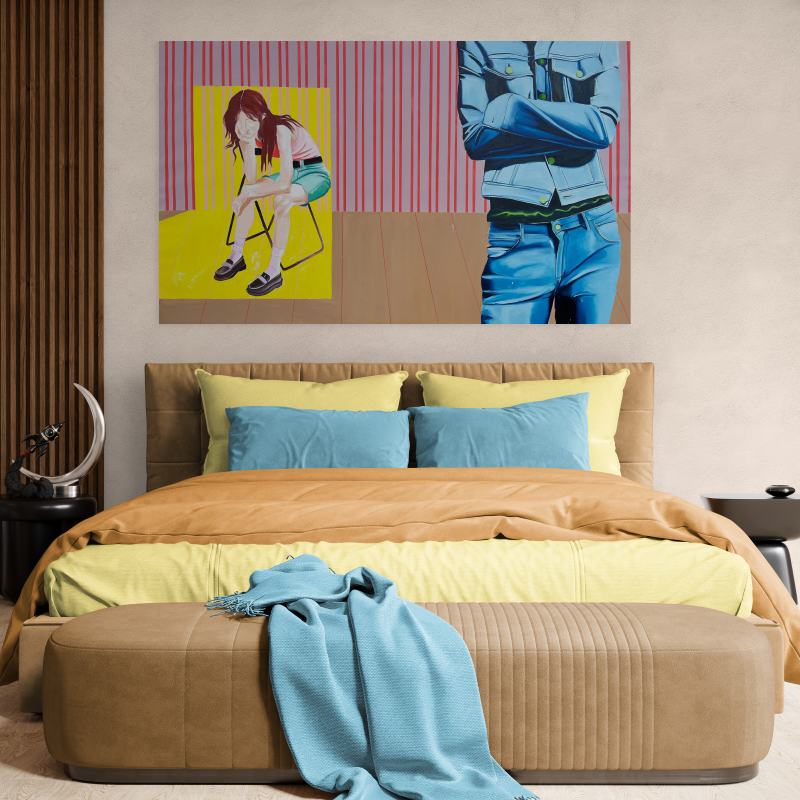 Rodinné vzťahy môžu byť krásne a láskyplné, ale niekedy aj komplikované. Najmä medzi súrodencami, kde časom občas prepukne rivalita alebo nedorozumenia kvôli rozdielom v povahách, názoroch či záujmoch. Aj keď máme rovnakých rodičov, každý z nás je iný, jedinečný. To nám však zvyčajne nebráni v tom, aby sme si boli blízki a mali sa radi. Súrodenci nás v živote sprevádzajú dlho a je fajn, že ich máme a že sú našou oporou v ťažkých chvíľach. Tento dvojmetrový figurálny obraz rozpráva príbeh súrodencov, ktorí sú veľmi odlišní, avšak zo symbolov farieb a tvarov je zrejmé, že si nie sú navzájom cudzí. Maľba je vďaka svojej veľkosti ideálnym doplnkom nielen do interiérov domovov, ale aj do firemných či spoločenských priestorov.