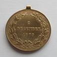medaila František Jozef I. - 2. december 1873 Stav: EF Kov: bronz Priemer: 36 mm Hmotnosť: 21,84 g Rok: 1873 Hrana: hladká Autori: Jozef Tautenhayn, Johann Pfeiffer Medaila je vyčistená Dňa 2. decembra 1873, oslávil cisár František Jozef I. 25. výročie nástupu na trón a pri tejto príležitosti rozhodol o zriadení nového vojenského vyznamenania, ktorým by bolo možné odmeniť aj spätne služby preukázané vlasti a panovníkovi. Štatút medaile bol zverejnený 31.12. 1873. Podľa neho bol vojnovou medailou dekorovaný každý, kto v období od nástupu Františka Jozefa I. na trón až do doby zriadenia medaile slúžil v jednotkách rakúskej a rakúsko-uhorskej armáde a vojnovom námorníctve, bez ohľadu na hodnosť a stav. Symbolicky bola razená z deloviny získanej z ukoristených nepriateľských kanónov.